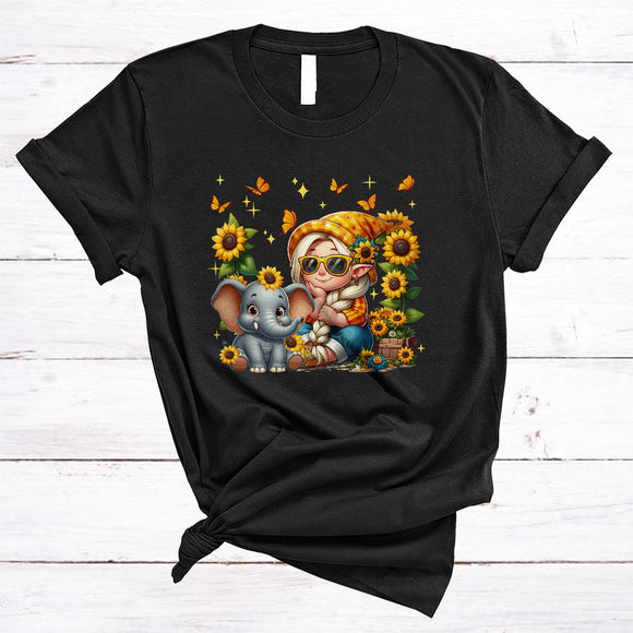 Cute Girl And Elephant, Adorable Thanksgiving Sunflowers Butterflies, Gardening Wild Animal Lover T-Shirt
