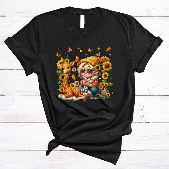 Cute Girl And Giraffe, Adorable Thanksgiving Sunflowers Butterflies, Gardening Wild Animal Lover T-Shirt