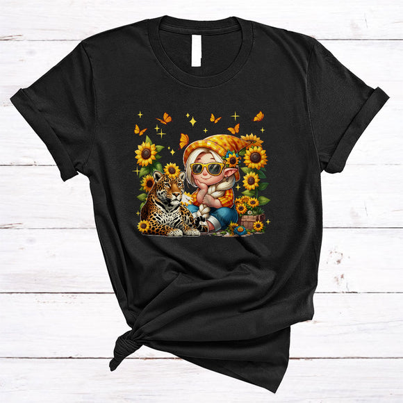 Cute Girl And Leopard, Adorable Thanksgiving Sunflowers Butterflies, Gardening Wild Animal Lover T-Shirt