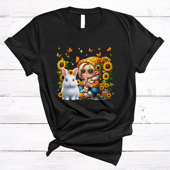 Cute Girl And Rabbit, Adorable Thanksgiving Sunflowers Butterflies, Gardening Wild Animal Lover T-Shirt