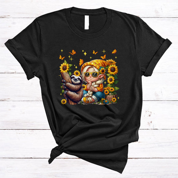 Cute Girl And Sloth, Adorable Thanksgiving Sunflowers Butterflies, Gardening Wild Animal Lover T-Shirt