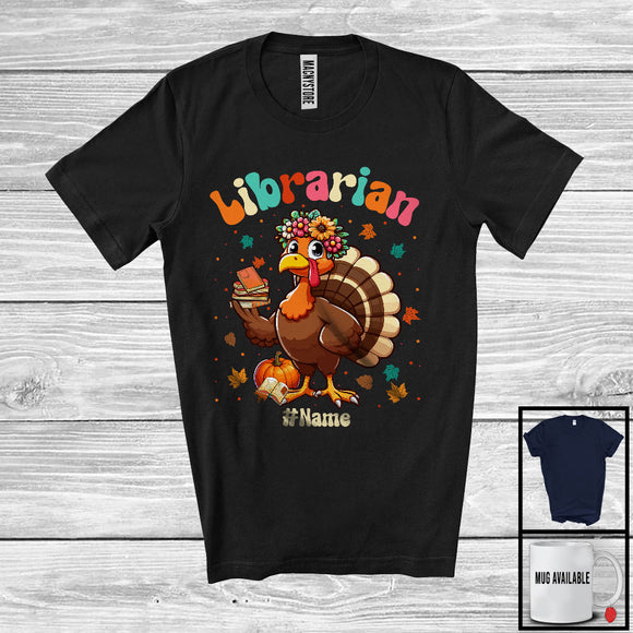 Personalized Custom Name Librarian; Adorable Thanksgiving Turkey Flowers; Working Jobs Proud T-Shirt