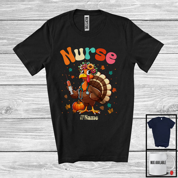 Personalized Custom Name Nurse; Adorable Thanksgiving Turkey Flowers; Working Jobs Proud T-Shirt