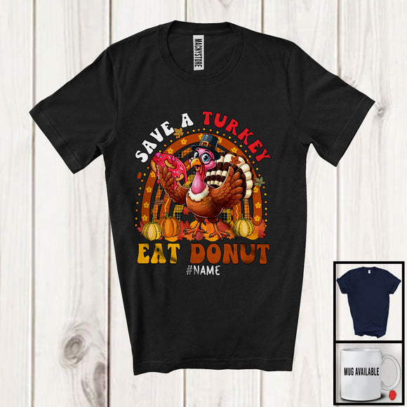 Personalized Custom Name Save A Turkey Eat Donut; Happy Thanksgiving Plaid Rainbow Turkey T-Shirt