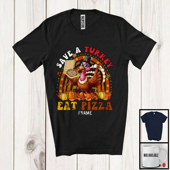 Personalized Custom Name Save A Turkey Eat Pizza; Happy Thanksgiving Plaid Rainbow Turkey T-Shirt