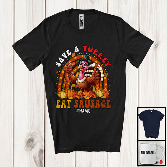 Personalized Custom Name Save A Turkey Eat Sausage; Happy Thanksgiving Plaid Rainbow Turkey T-Shirt