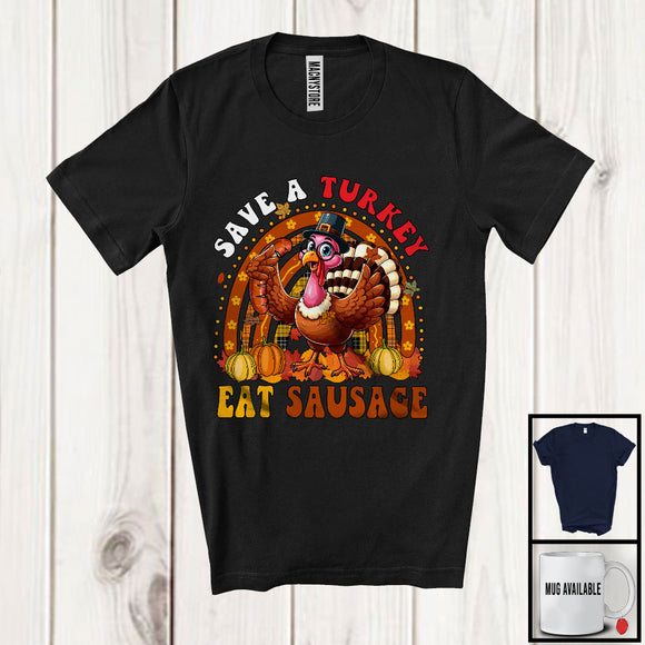 Save A Turkey Eat Sausage; Awesome Thanksgiving Plaid Rainbow Turkey; Sausage Food Lover T-Shirt