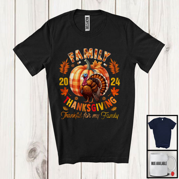 Thanksgiving 2024 Thankful For My Family; Lovely Plaid Pumpkin Turkey; Autumn Family T-Shirt