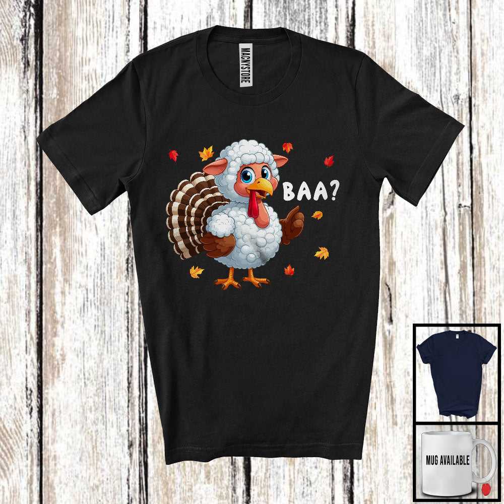 Baa; Wonderful Thanksgiving Fall Autumn Leaves Sheep Turkey; Farm Farmer Family Group T-Shirt. This cotton t-shirt is a durable staple product with a classic fit. One of the most popular items, it has a relaxed style made for everyday and casual wear.