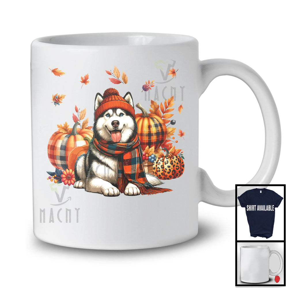 Husky With Plaid Pumpkins Fall Leaves; Lovely Thanksgiving Dog Lover; Family Group T-Shirt