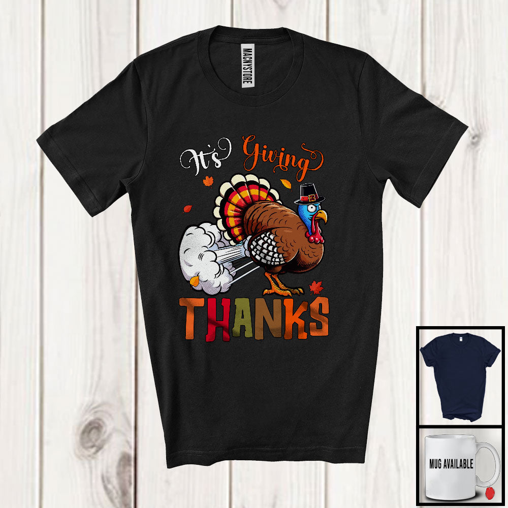 IIt's Giving Thanks; Sarcastic Thanksgiving Turkey Farting; Matching Dinner Family Group T-Shirt. This cotton t-shirt is a durable staple product with a classic fit. One of the most popular items, it has a relaxed style made for everyday and casual wear.