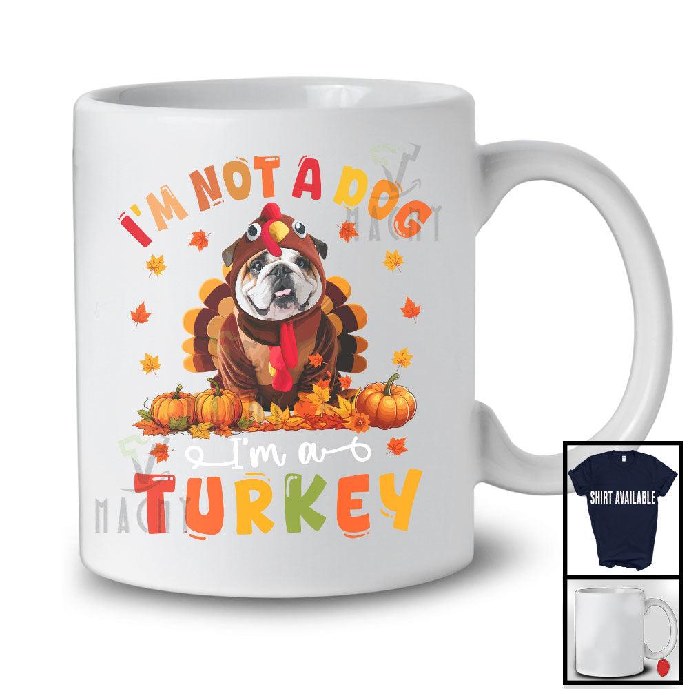 I'm Not A Dog I'm A Turkey; Humorous Thanksgiving Turkey Bulldog Dog Owner Lover; Family T-Shirt. This cotton t-shirt is a durable staple product with a classic fit. One of the most popular items, it has a relaxed style made for everyday and casual wear.