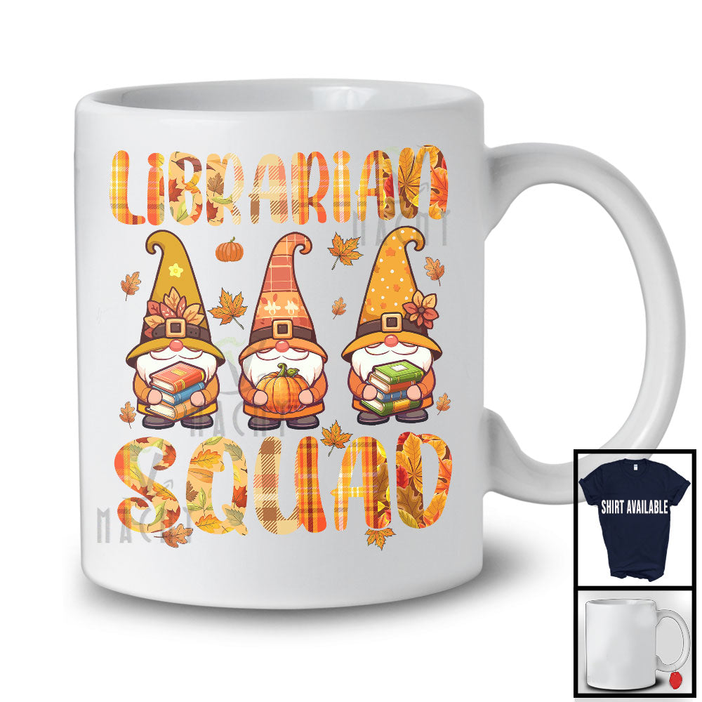 Librarian Squad; Awesome Thanksgiving Fall Leaves Plaid Gnome; Matching Librarian Group T-Shirt