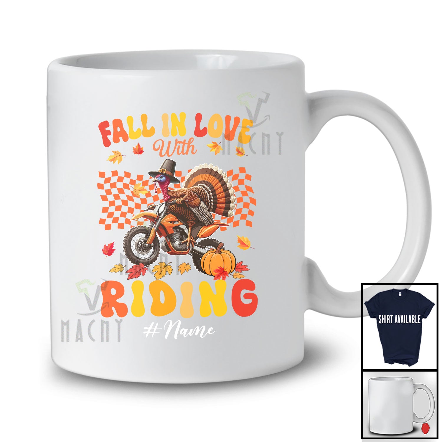 This Personalized Custom Name Fall In Love With Riding; Amazing Thanksgiving Pumpkin Dirt Bike T-Shirt is great idea gift for your family, friends in this birthday, christmas, mother's day, father's day, patrick's day or any holiday.