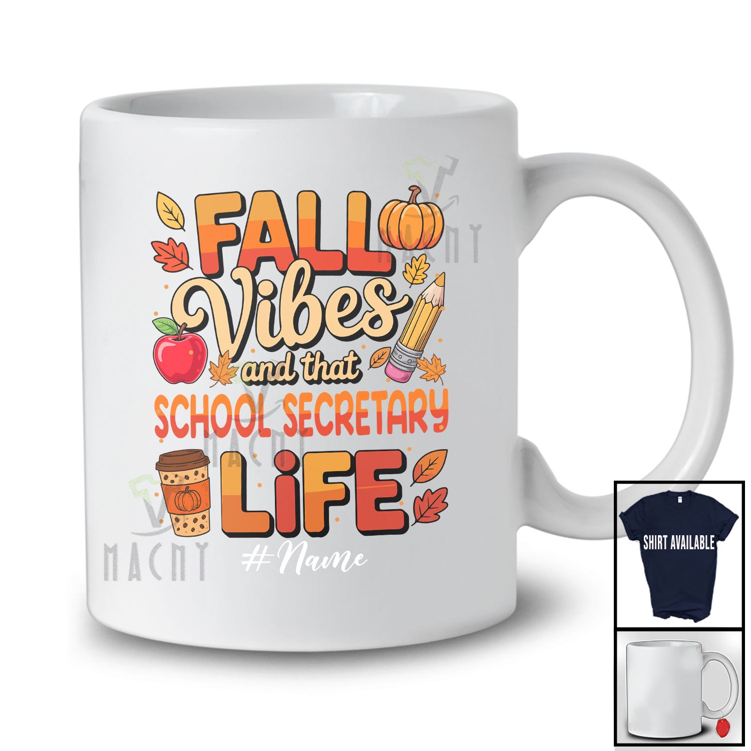 Personalized Custom Name Fall Vibes School Secretary; Proud Thanksgiving Coffee Pumpkin T-Shirt
