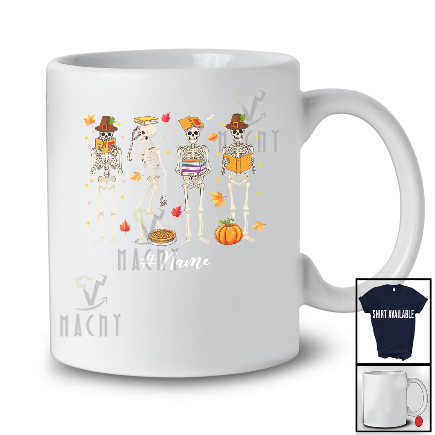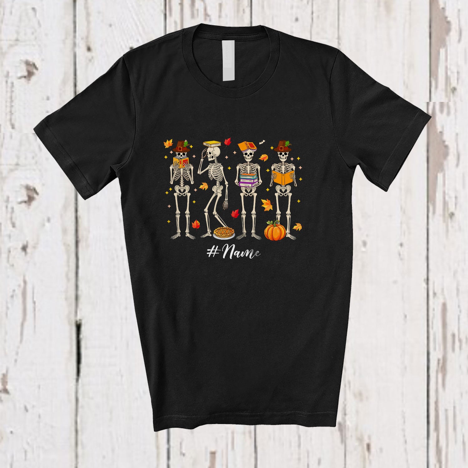 Personalized Custom Name Four Skeleton Book Nerd; Happy Thanksgiving Teacher Librarian T-Shirt
