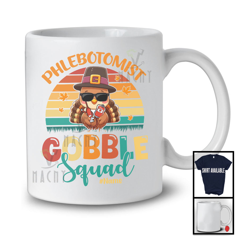 Personalized Custom Name Phlebotomist Gobble Squad; Happy Thanksgiving Vintage Retro Turkey T-Shirt