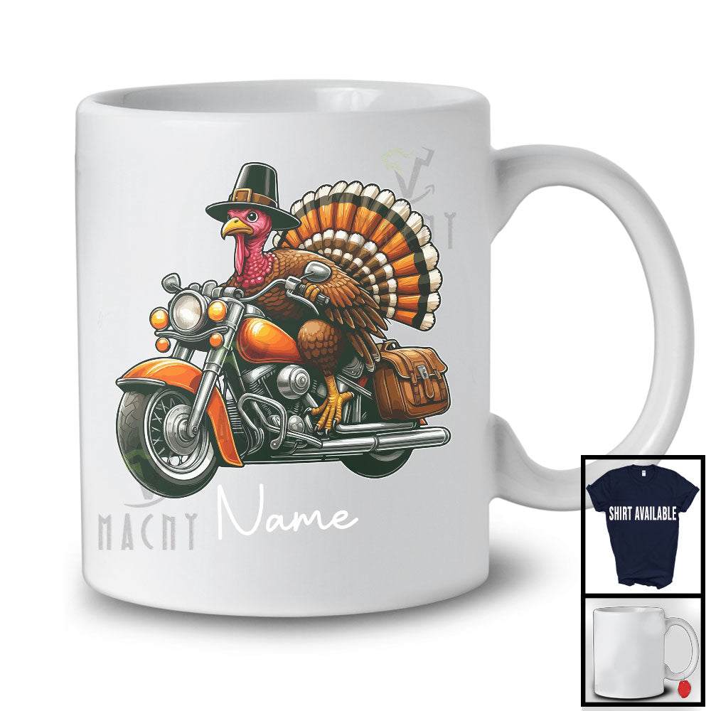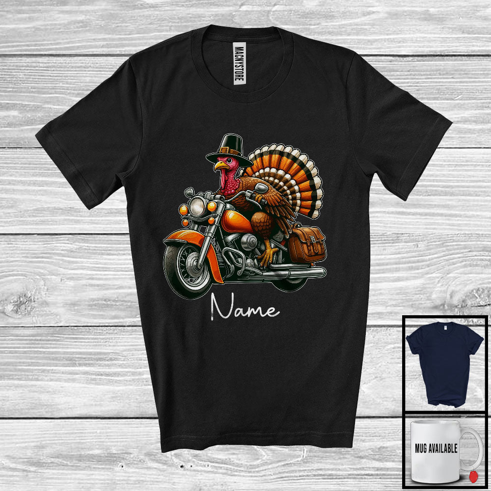 Personalized Custom Name Pilgrim Turkey Riding Motorcycle, Amazing Thanksgiving Rider Biker Team T-Shirt