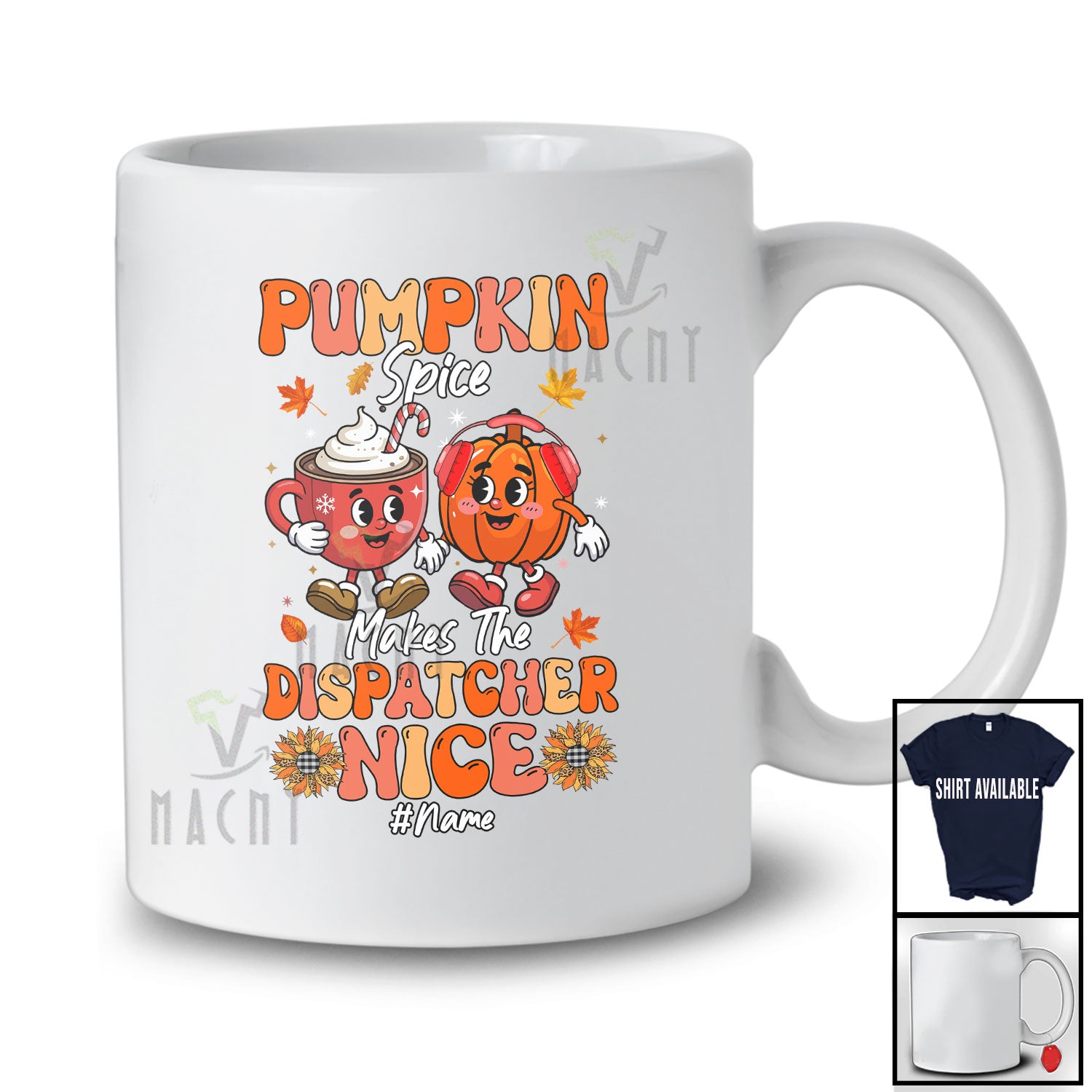 Personalized Custom Name Pumpkin Spice Makes Dispatcher Nice; Lovely Thanksgiving Family T-Shirt. This cotton t-shirt is a durable staple product with a classic fit. One of the most popular items, it has a relaxed style made for everyday and casual wear.