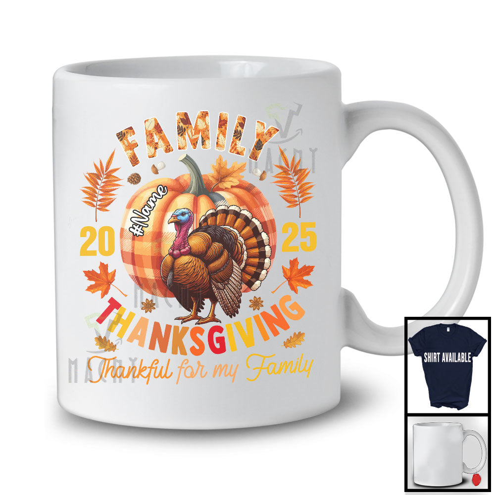 Personalized Custom Name Thanksgiving 2025 Thankful For My Family; Lovely Plaid Pumpkin Turkey T-Shirt
