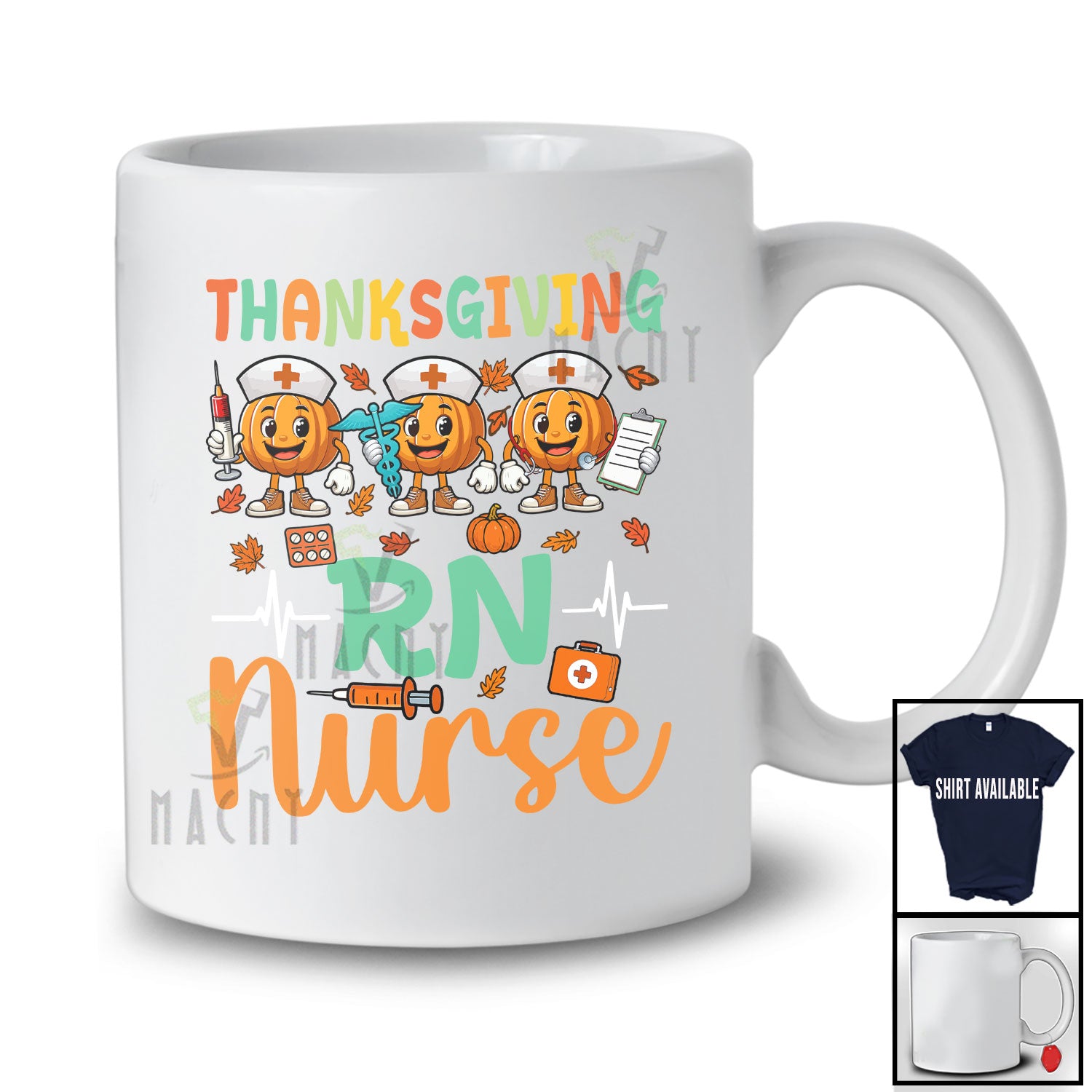 This Personalized Custom Name Thanksgiving RN Nurse; Humorous Fall Three Pumpkins; Family T-Shirt is great idea gift for your family, friends in this birthday, christmas, mother's day, father's day, patrick's day or any holiday.