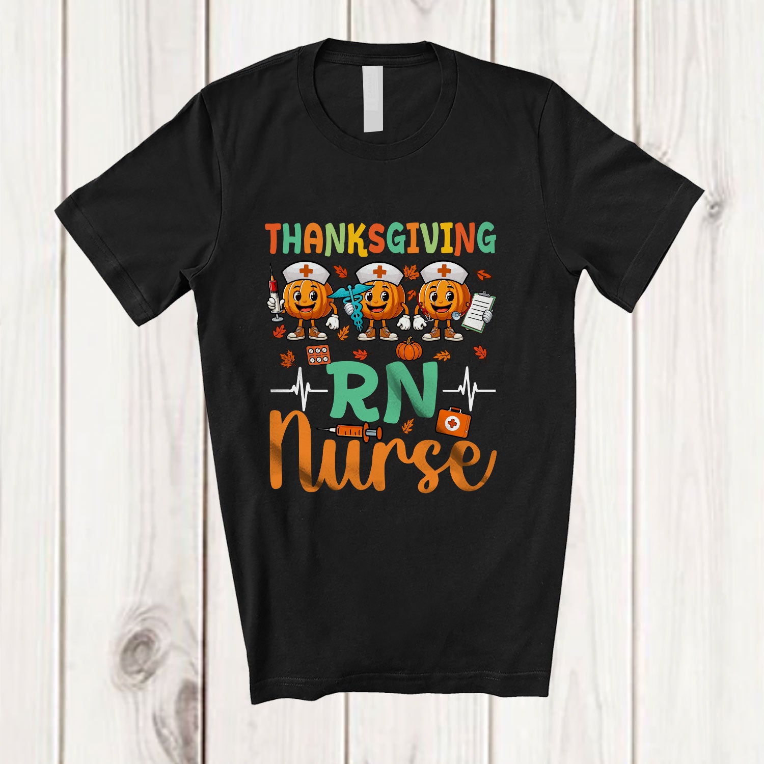 Personalized Custom Name Thanksgiving RN Nurse; Humorous Fall Three Pumpkins; Family T-Shirt