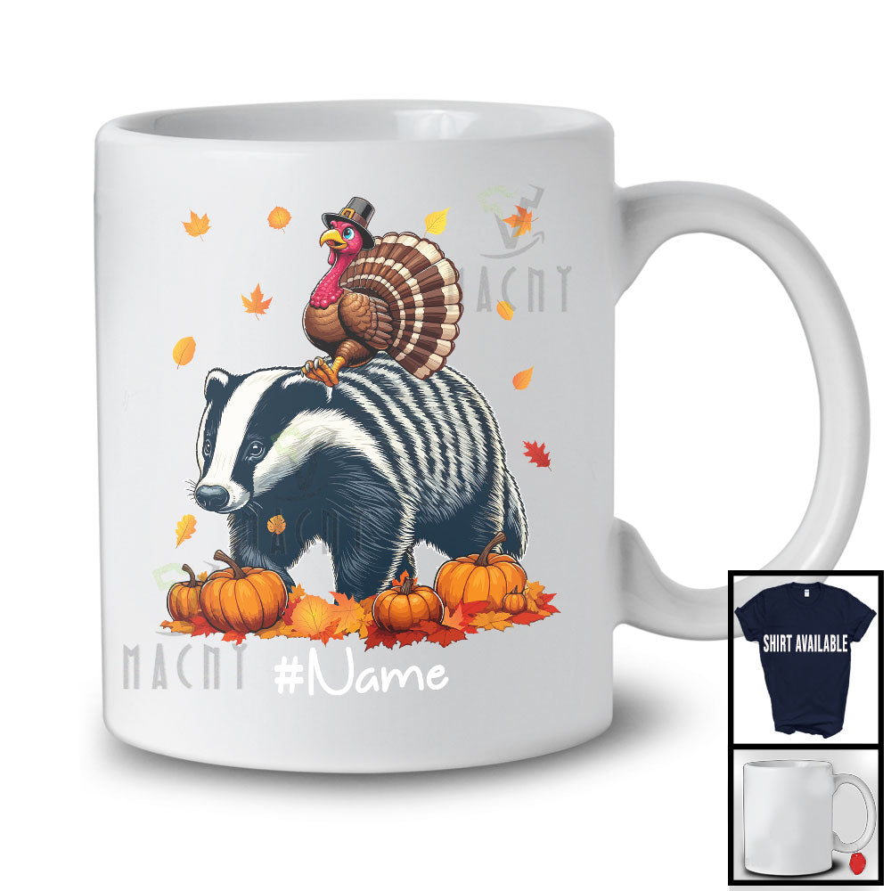 Personalized Custom Name Turkey Riding Badger, Lovely Thanksgiving Pumpkins, Badger Lover T-Shirt
