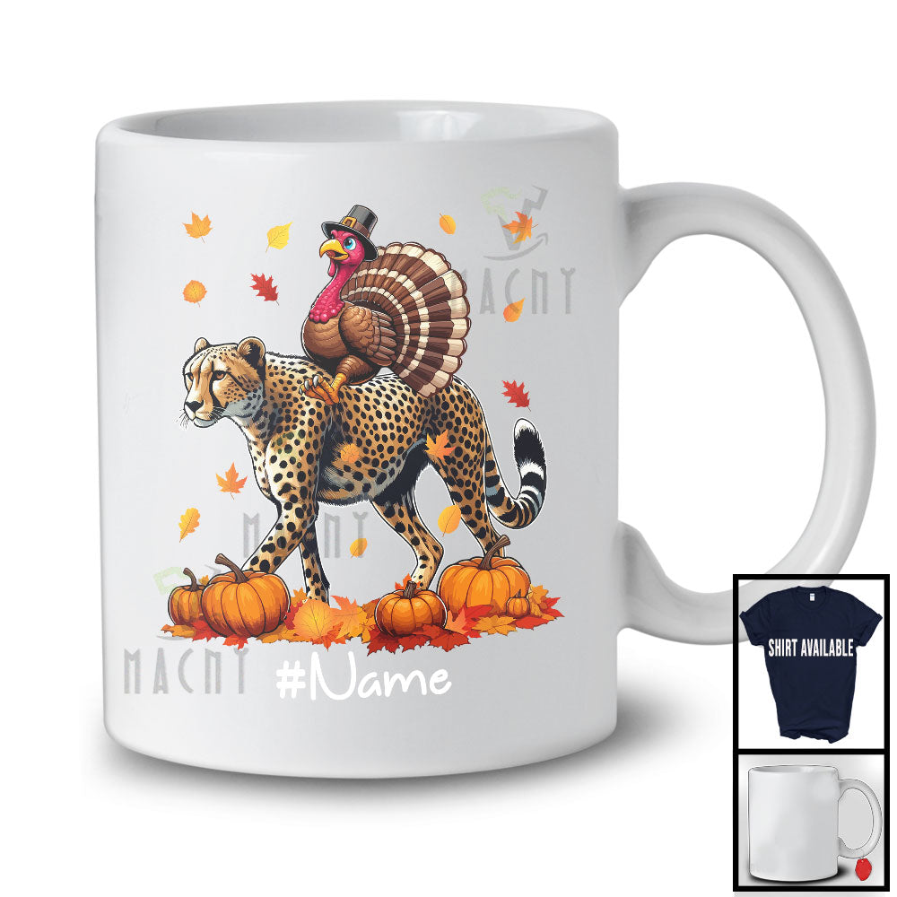 Personalized Custom Name Turkey Riding Cheetah, Lovely Thanksgiving Pumpkins, Cheetah Lover T-Shirt