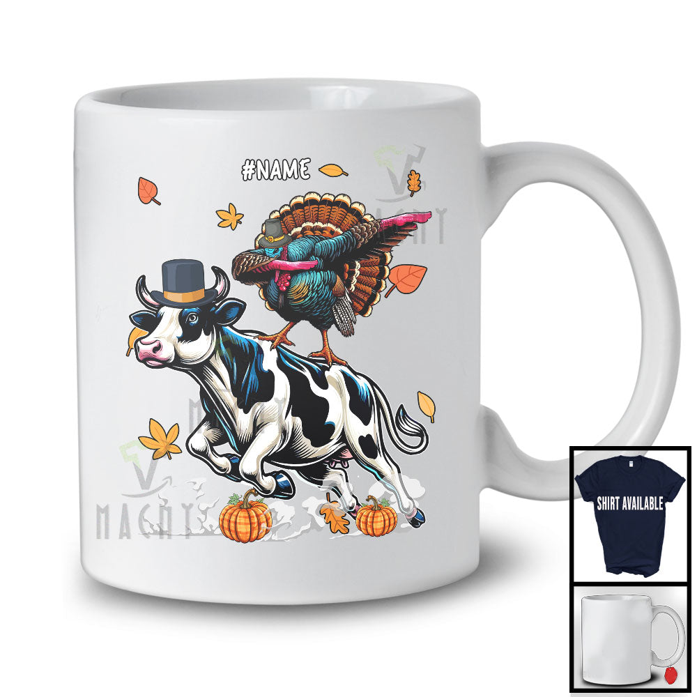 Personalized Dabbing Turkey Riding Cow; Humorous Thanksgiving Farm; Custom Name Farmer T-Shirt