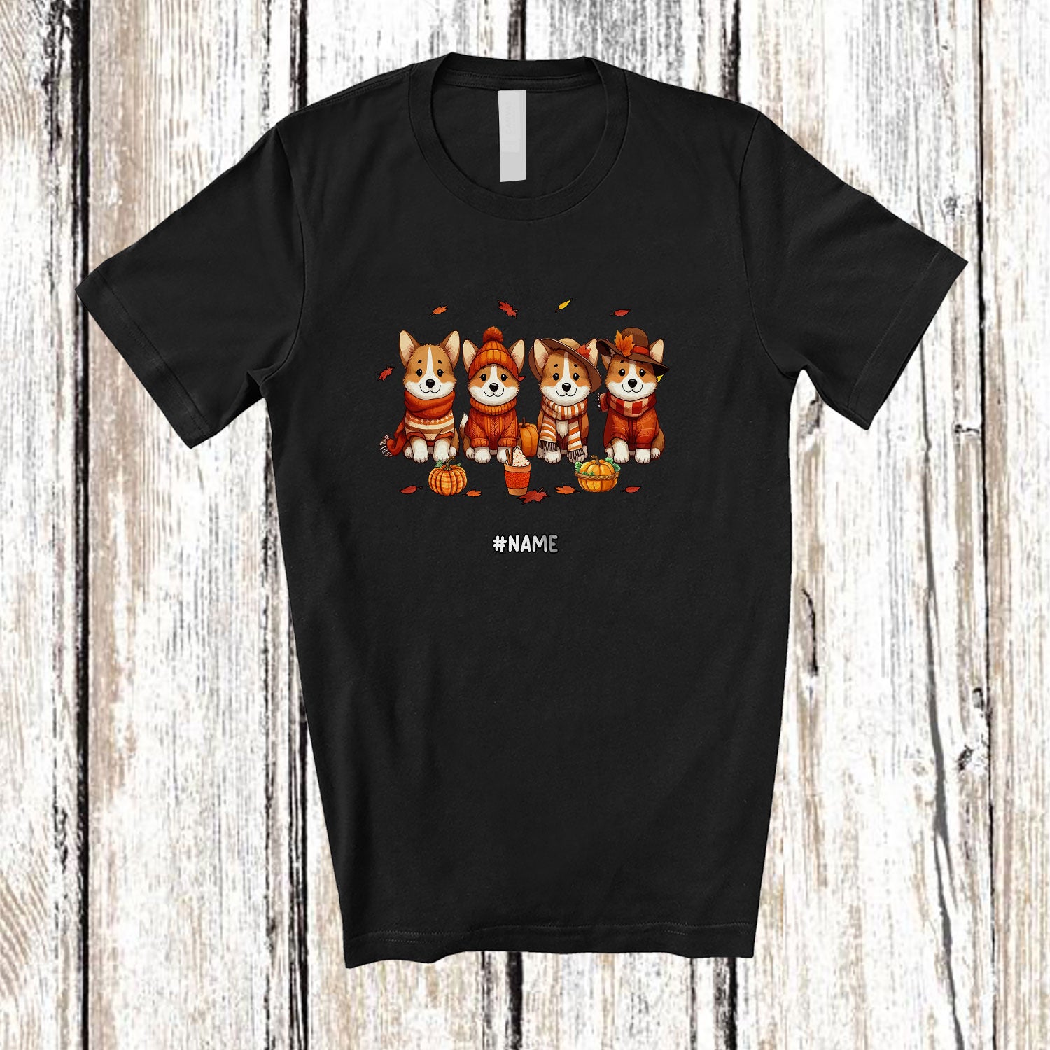 Personalized Four Corgi Fall Leaves Pumpkin; Lovely Thanksgiving Corgi Owner; Family T-Shirt