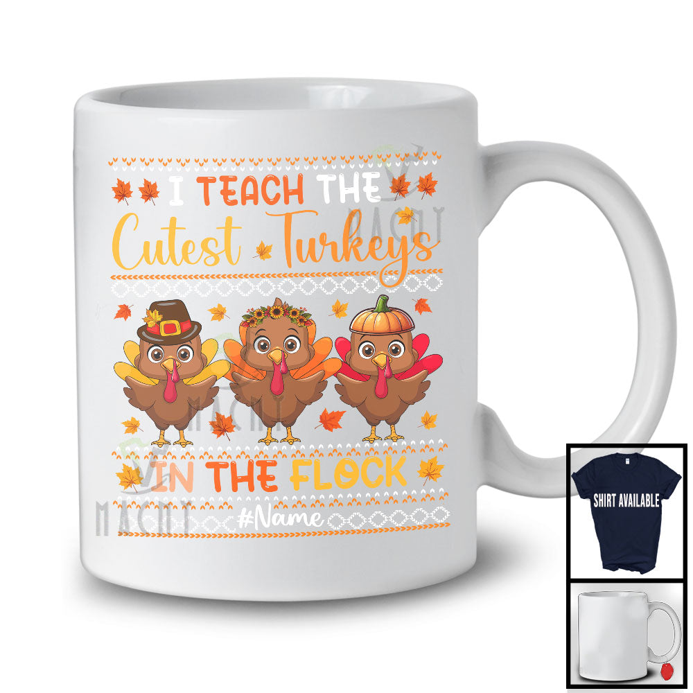 Personalized I Teach The Cutest Turkeys; Lovely Thanksgiving Custom Name Teacher Sweater T-Shirt