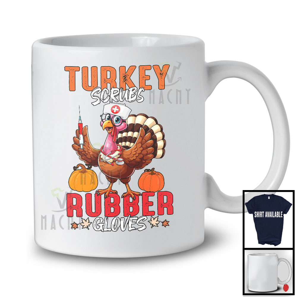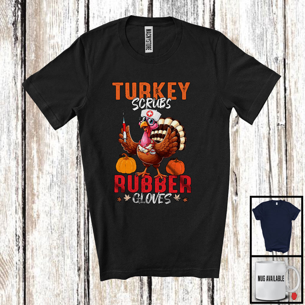 Turkey Scrubs Rubber Gloves; Fantastic Thanksgiving Nurse Turkey Nursing; Pumpkin Family T-Shirt