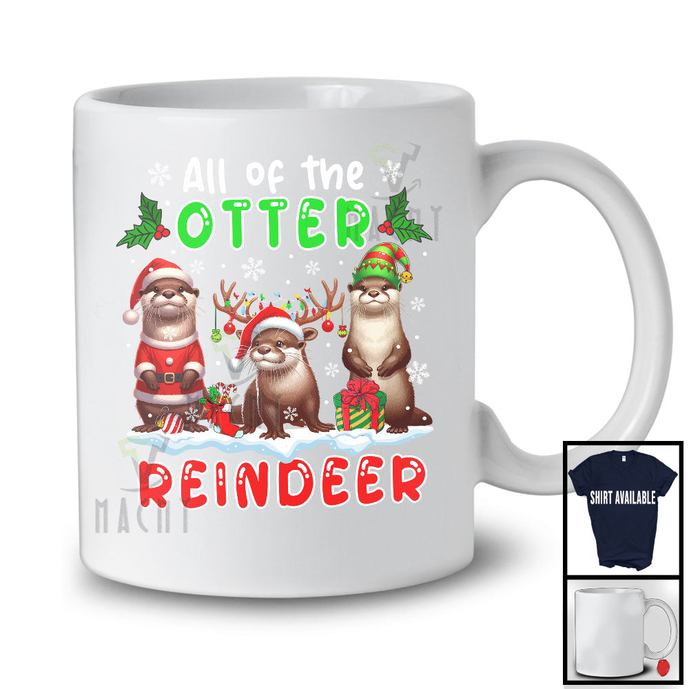 All Of The Otter Reindeer; Humorous Christmas Three Otters Santa; X-mas Lights Animal T-Shirt. This cotton t-shirt is a durable staple product with a classic fit. One of the most popular items, it has a relaxed style made for everyday and casual wear.