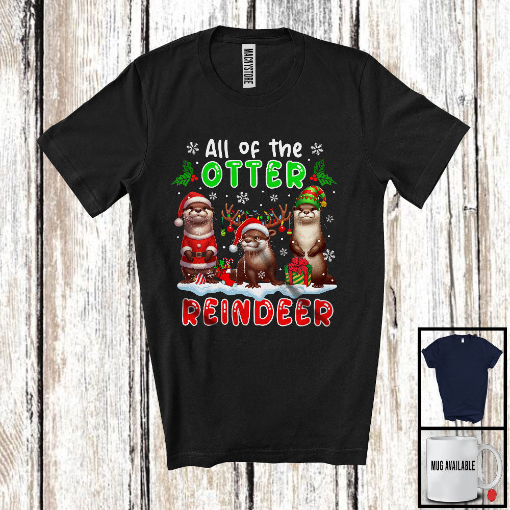 All Of The Otter Reindeer; Humorous Christmas Three Otters Santa; X-mas Lights Animal T-Shirt