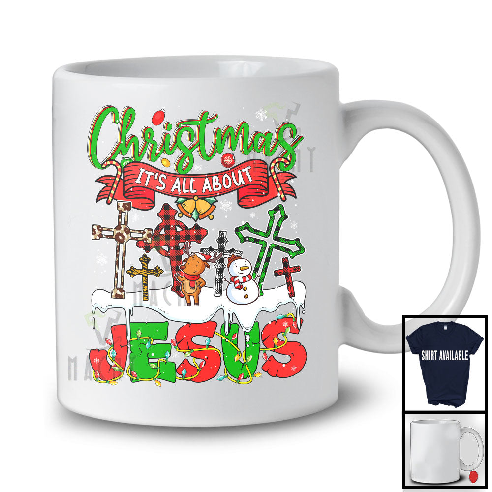 • The Christmas It's All About Jesus; Awesome Christmas Snow Plaid Cross; X-mas Snowman Reindeer T-Shirt is evocative, to say the least, but that's why you're drawn to it in the first place.