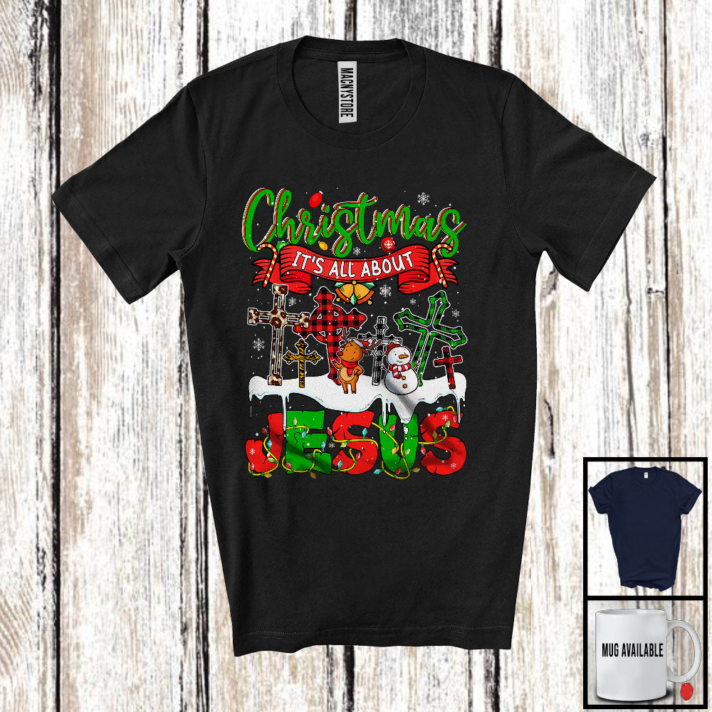 Christmas It's All About Jesus; Awesome Christmas Snow Plaid Cross; X-mas Snowman Reindeer T-Shirt
