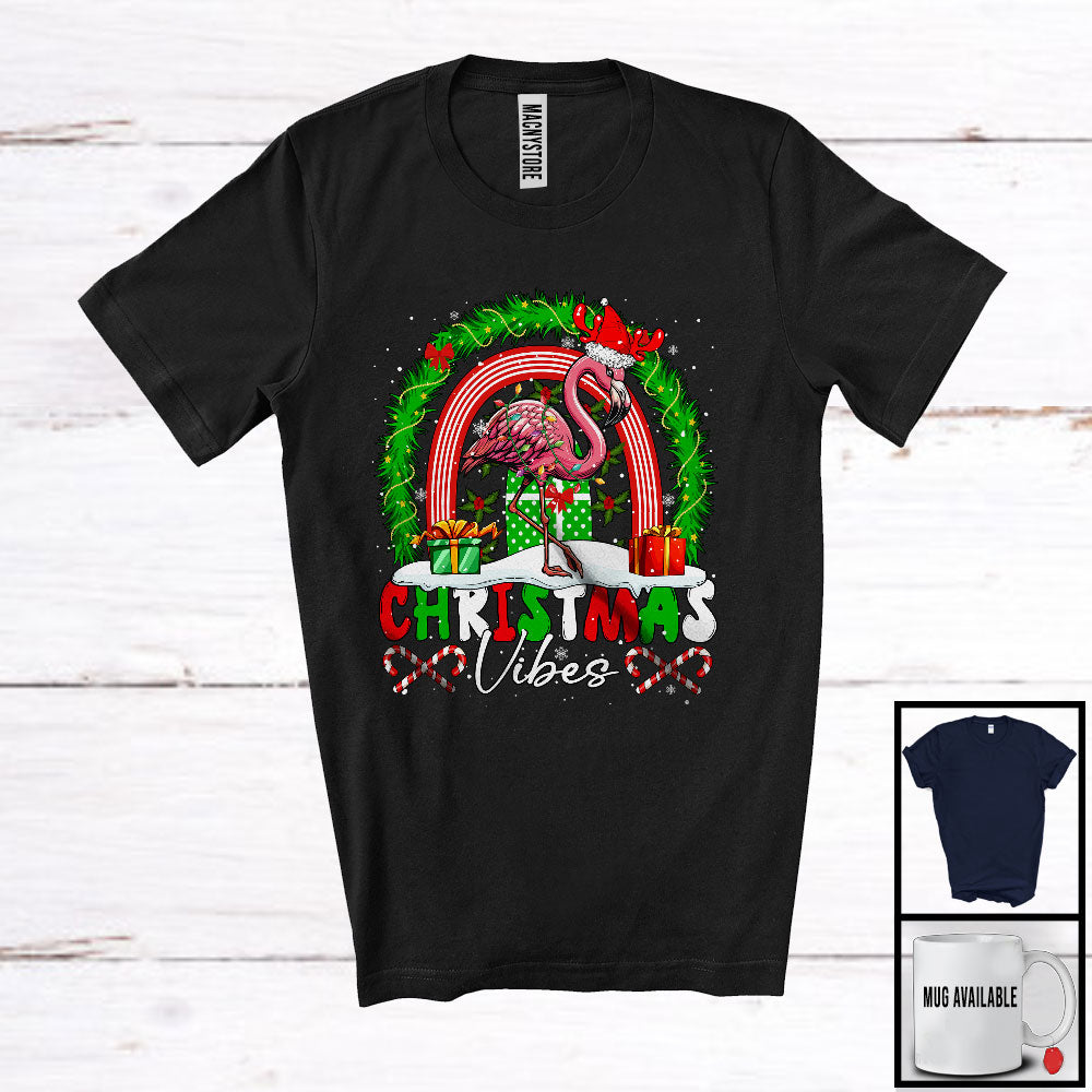 Christmas Vibes; Awesome X-mas Family Flamingo Reindeer Santa; Rainbow Animal Lover T-Shirt