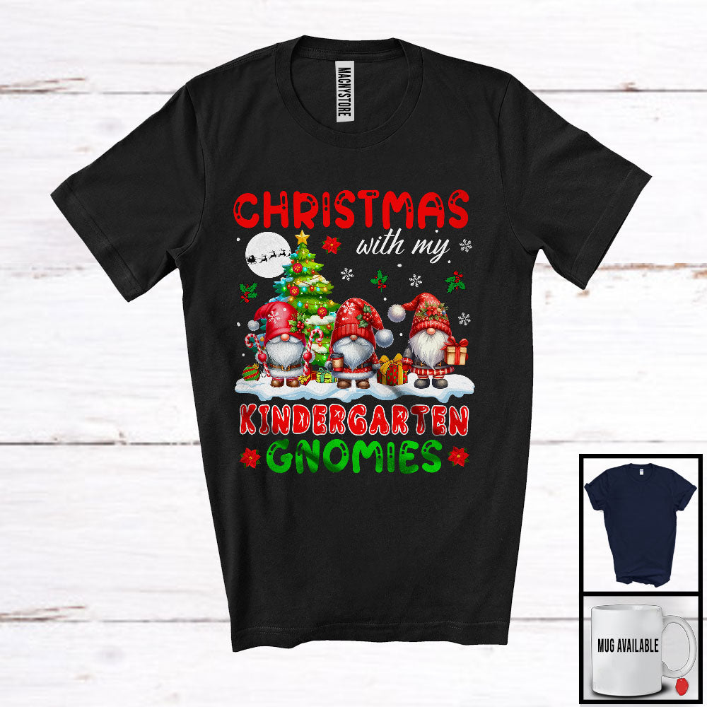 Christmas With My Kindergarten Gnomies; Awesome X-mas Tree Three Gnomes; Teacher Group T-Shirt