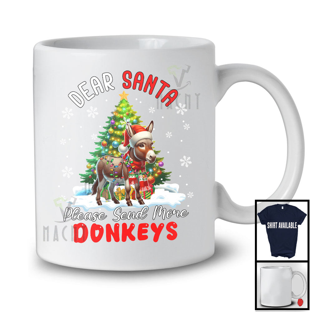 Dear Santa Please Send More Donkeys; Fantastic Christmas Tree Santa Donkey; Farm Animal Farmer T-Shirt. This cotton t-shirt is a durable staple product with a classic fit. One of the most popular items, it has a relaxed style made for everyday and casual wear.