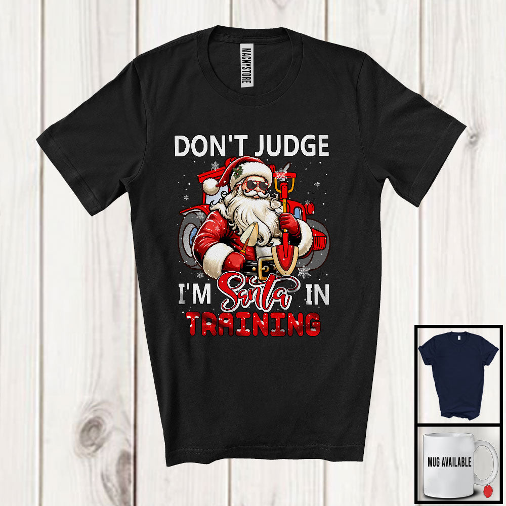 Don't Judge I'm Santa In Training; Sarcastic Christmas Farmer Santa; Snowing X-mas Family T-Shirt