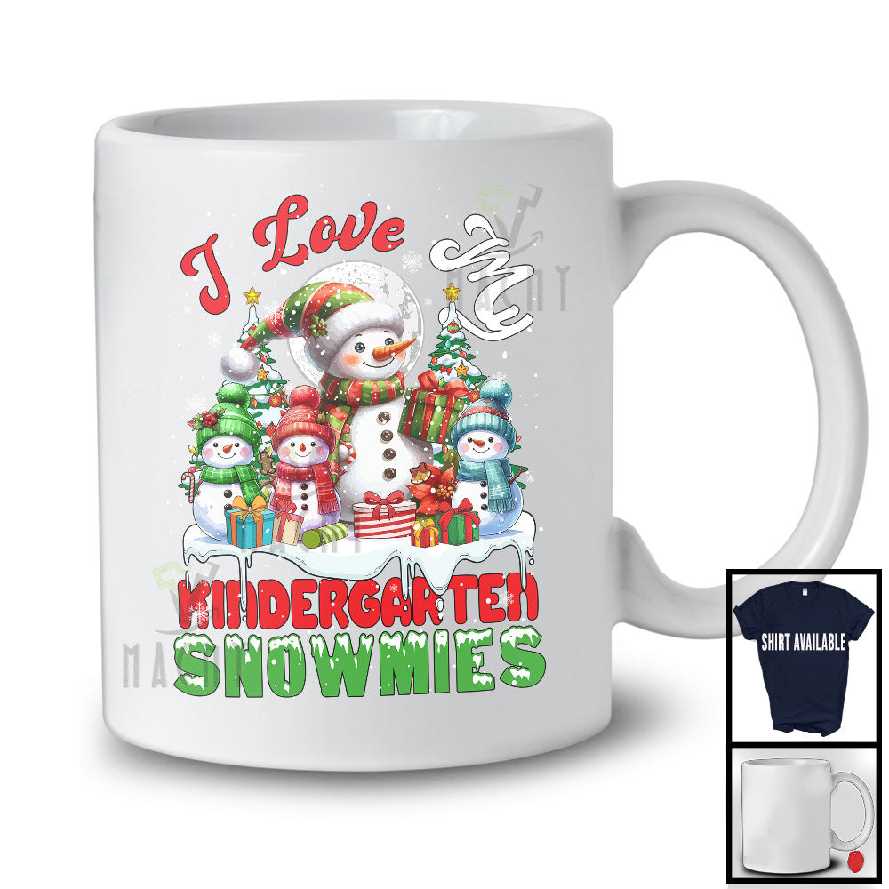 The I Love My Kindergarten Snowmies; Joyful Christmas Tree Snowman Lover; X-mas Teacher Group T-Shirt destined to impress, and priced at only $12.95, for a limited time.