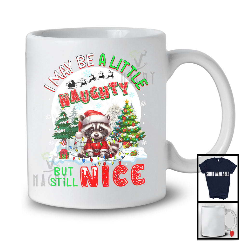 new MacnyStore - I May Be A Little Naughty But Still Nice; Humorous Christmas Raccoon Santa; X-mas Moon T-Shirt – Macnystore