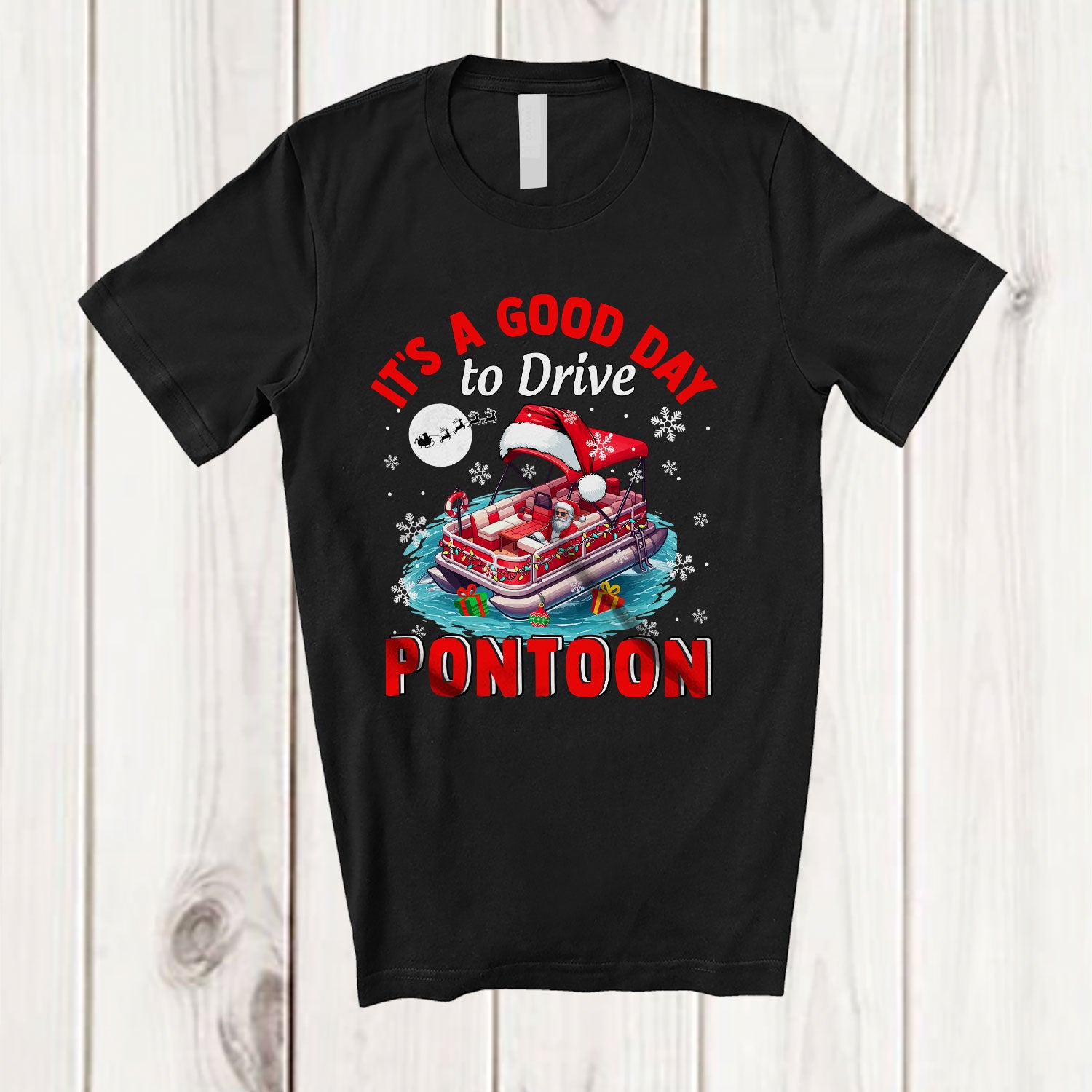 It's A Good Day To Drive Pontoon; Amusing Christmas Santa Pontoon; X-mas Lights Family T-Shirt