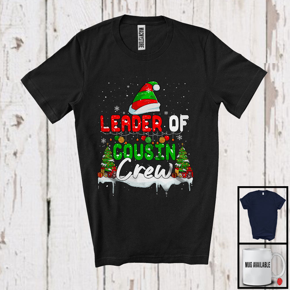 Leader Of Cousin Crew; Awesome Christmas Tree Snowing ELF Hat; X-mas Family Group T-Shirt