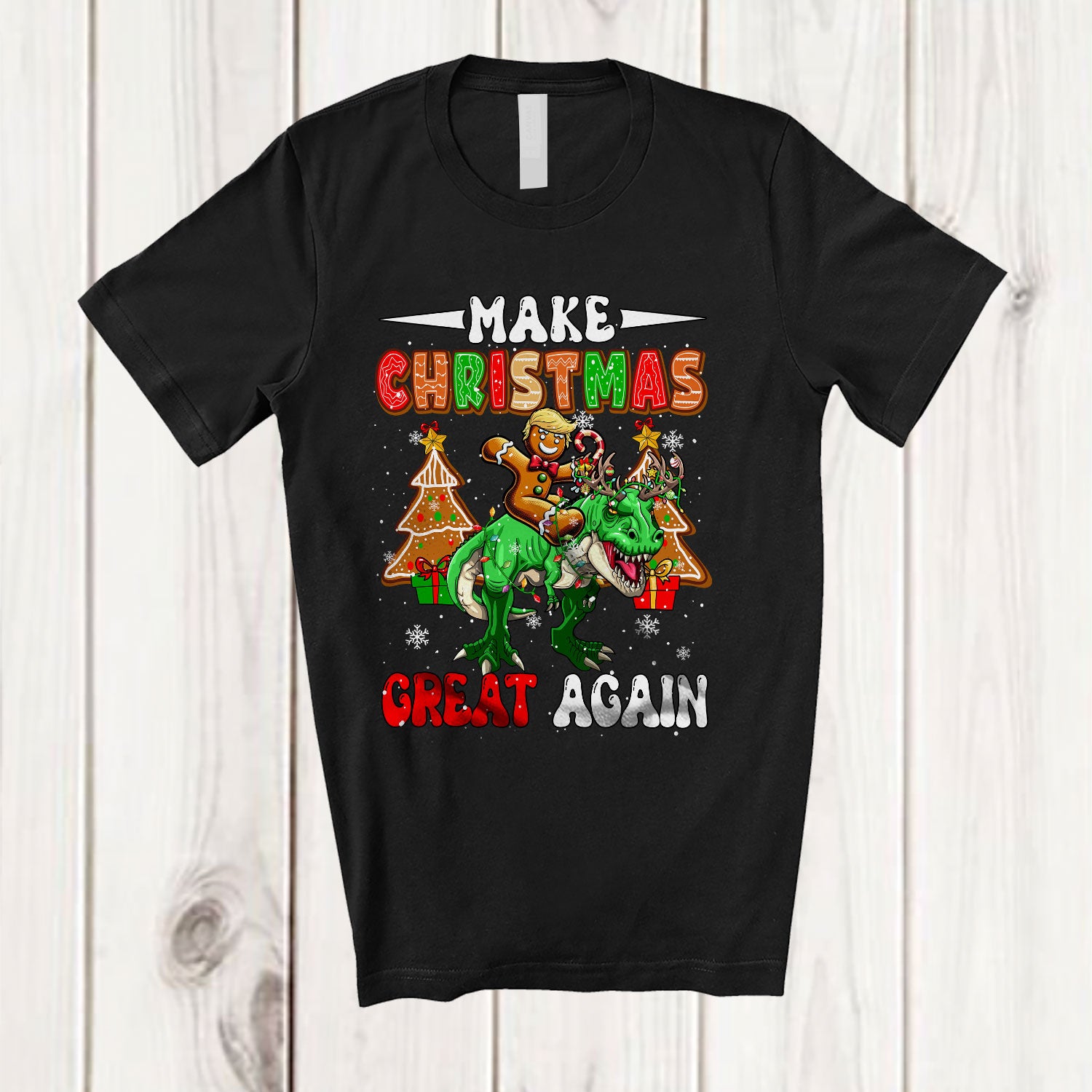 Make Christmas Great Again; Joyful Christmas Trump Gingerbread Riding T-Rex Won T-Shirt