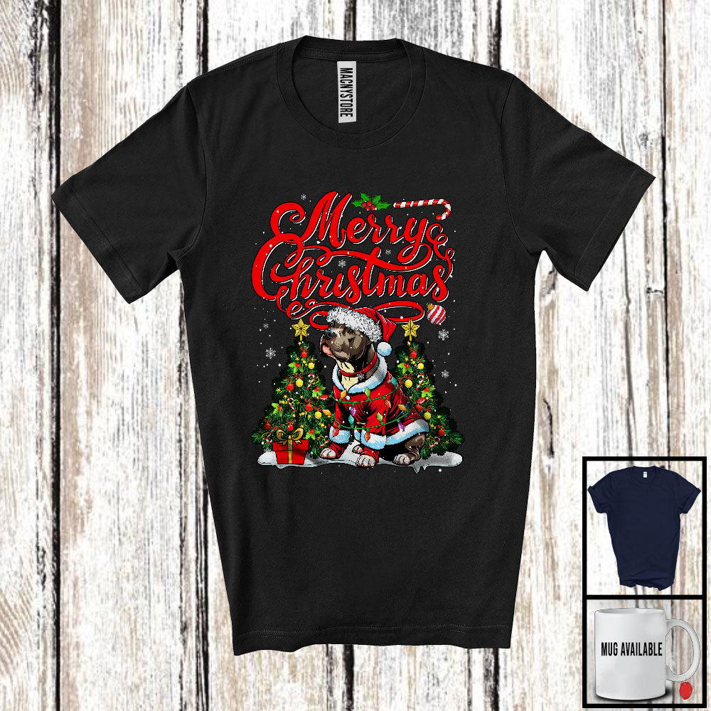 Merry Christmas; Adorable Santa Pit Bull Dog Owner Lover; X-mas Tree Family Group T-Shirt