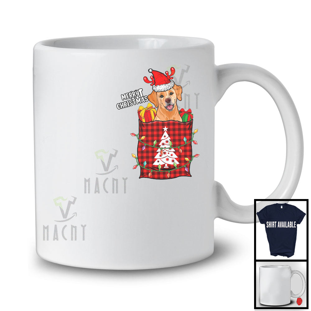 new MacnyStore - Merry Christmas; Amusing X-mas Lights Santa Reindeer Labrador Retriever In Plaid Pocket; Family T-Shirt – Macnystore