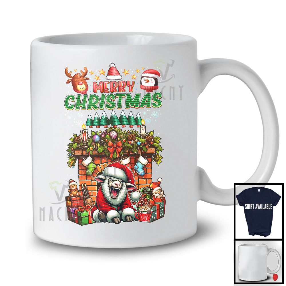 Merry Christmas; Cheerful X-mas Socks Fireplace Santa Sheep Lover; Snow Family Group T-Shirt