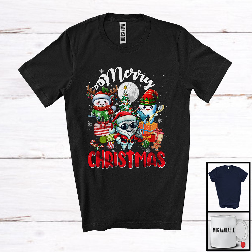 Merry Christmas, Cheerful X-mas Three Santa ELF Reindeer Teeth, Matching Dentist Group T-Shirt