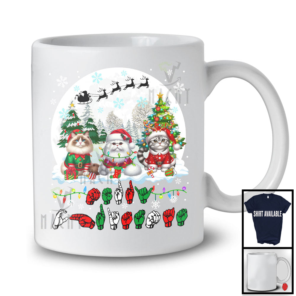new MacnyStore - Merry Christmas; Fantastic Christmas Moon Three Cats Owner; ASL Sign Language Moon T-Shirt – Macnystore